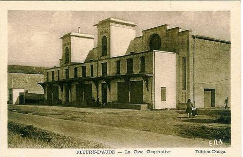 The Co-op which was built on the station site is called La Vendemiaire.[7] The Co-op was created in 1937 and the building opened its doors to the wine harvest in 1938. In 1979, 652 members still cultivated 889 hectares of vines (just a little more than one hectare per cooperator) and the cellar vinified 91,000 hectoliters of table wines.The Co-op building soon after construction in the late 1930s. The tramway station was under the forecourt and the facade of the new building. The brick building at the left of the picture is the building which housed the station cafe and appears in images above. [8]