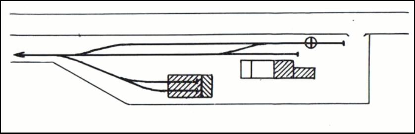 “Conventional railway points could not be used, so a similar function was fulfilled by a large number of curved movable pieces of track which, when rotated one way, would connect the main and one direction; when turned end-for-end, the curve went in the opposite direction, and so connected the main and a different track. These could not be called turntables since they could only be moved when there was no rolling stock on them.” [3]