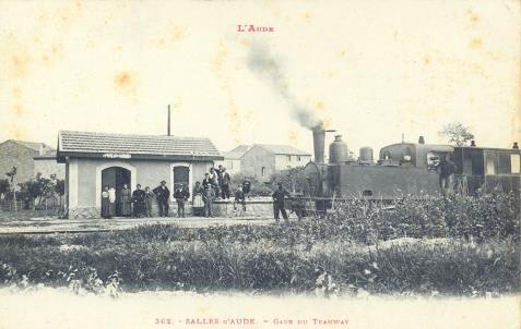 The station was sited to the Southeast of the village in the area highlighted by the green ellipse on the aerial image above, which places it some distance to the right of the picture immediately above.Sketch plan of the Station at Salles d’Aude. [5]The Station at Salles d’Aude. [5]Corpet-Louvet 0-6-0T No. 21 at Salles d’Aude. [5]Another Corpet-Louvet 0-6-0T, this time unidentified, at the Station. [5]