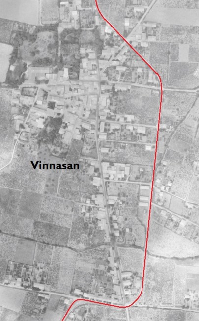 Vinnasan is now sited very close to the A9/E80 Autoroute which runs just to the East of the area of the adjacent aerial image. The tramway route has been superimposed onto an aerial image from 1958, although it would by that date have been long-gone.
