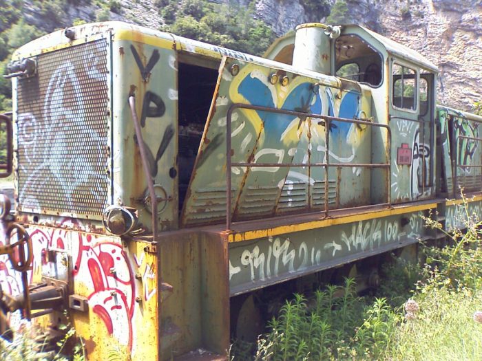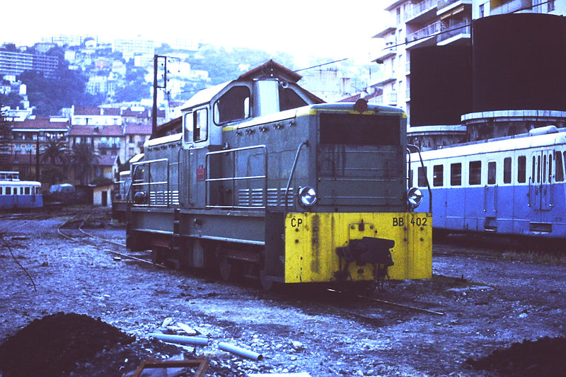 It ran, for some years on the Chemin de Fer de Paris à Orléans (PO) Corrèze and was transferred to the Nics-Digne line in 1971 where it remains. [17]BB401 at La Gare de Saint-Bonnet-Avalouze (PO-Corrèze) in 1963, (c) Jean-Michel Vaugouin. [16]Here at Argentat on the same PO Correze network in 1967, BB 401 awaits the departure of Billard X251 courtesy of “030T 1707 Nord-Est” on the Passions Metrique et Etroit Forum in France. [16]BB401 at Lingostiere in 1985. [18]BB401 at Lingostiere in 1997. [18]BB401 in storage at La Tinee and in a dilapidated condition in the 21st century! [12]BB401 at the Gare de la Tinee a little earlier in the 21st century. [13]BB401 at the head of a goods train in the 1970s. [6]The two images immediately above were taken in November 1989 and show BB401 at the Gare du Sud in Nice. They were downloaded from Smugmug. They were taken by Dave Rowland and freely available to download. I was unable to establish whether copyright issues applied. [14]