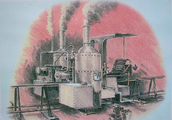 “Locomotives were specially built with two boilers to balance on the track, and consequently two fireboxes, one of which had to be stoked by the driver.” [3]