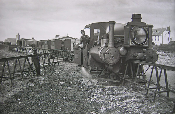 “The reason for the adoption of the Lartigue system was cheapness of construction. The sea sand at Ballybunion, a small seaside resort on the Atlantic, in County Kerry, near the mouth of the Shannon, had been found to be particularly rich in phosphates; and Lord Devon, who owned considerable estates in the West of Ireland, was anxious that it should be available for fertilising purposes over a wider area. When it was explained to him that a railway for the purpose could be constructed very economically on the Lartigue system, he warmly in supported the scheme; and it was decided to build such a line to Listowel, a small market-town between 9 and 10 miles inland, served by the Limerick-Tralee line of the (then) Waterford, Limerick & Western Railway.”