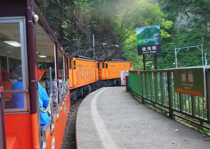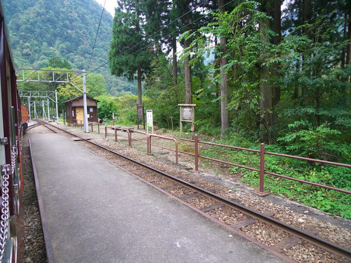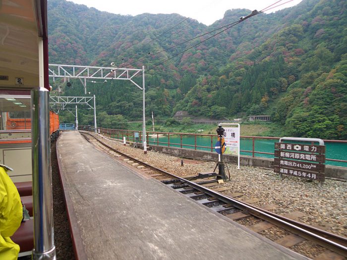The line continues South on the West side of the Gorge passed the Kanetsuri Hot Springs, through a series of tunnels, and over a series of bridges before reaching the next station at Koyadaira close to the Dam of the same name.