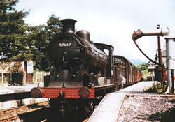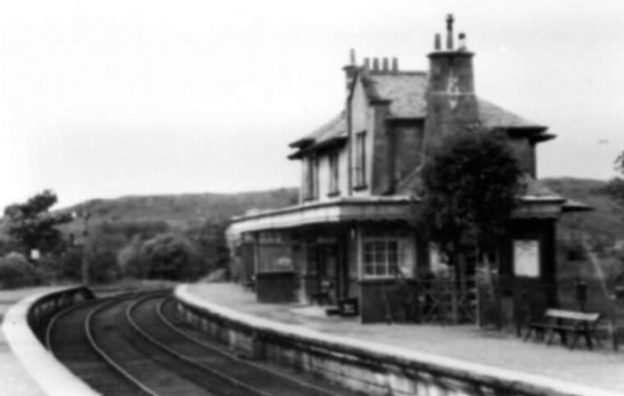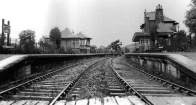 South of Nekomata, the railway continued down the East side of the Gorge. It passed in tunnel under Higashikanetsuriyama and then crossed to the West side of the Gorge. It then passed along the North flank of Nishikanetsuriyama into Kanetsuri Station which is shown in the adjacent picture.