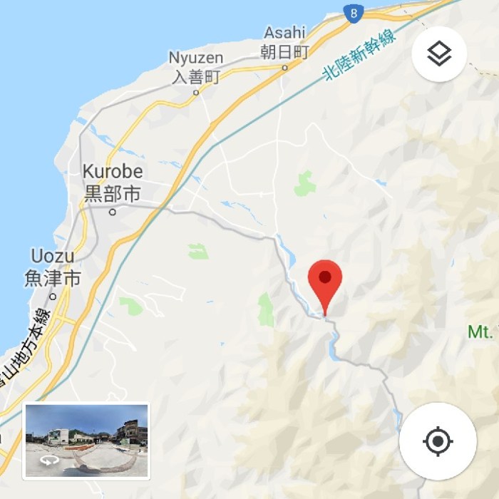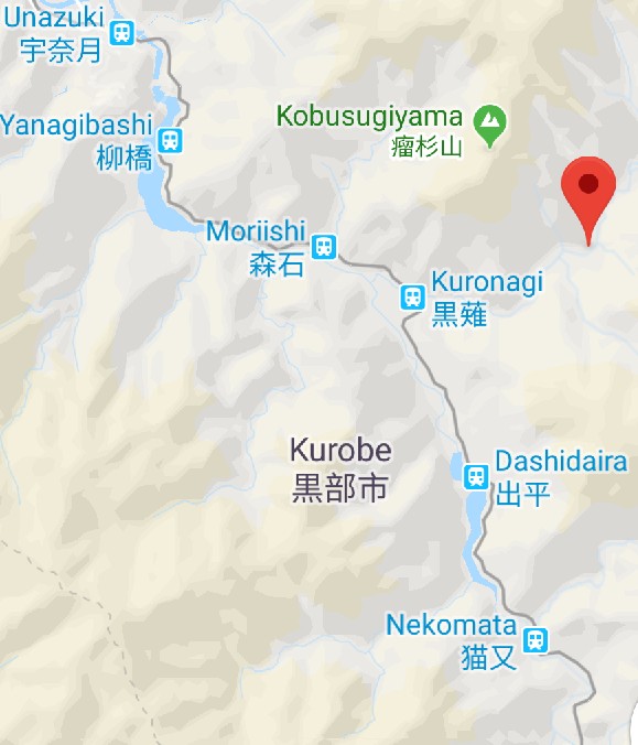- https://www.google.co.uk/maps/place/Kuronagi+Station/@36.786557,137.625156,3a,75y,90t/data=!3m8!1e2!3m6!1sAF1QipPhBsL6Awc5Diy7EsnivlU7dhhzcsFtlW_Z9_ci!2e10!3e12!6shttps:%2F%2Flh5.googleusercontent.com%2Fp%2FAF1QipPhBsL6Awc5Diy7EsnivlU7dhhzcsFtlW_Z9_ci%3Dw203-h152-k-no!7i2048!8i1536!4m5!3m4!1s0x5ff7b6fad2bee879:0x22e23d0be2f09cf!8m2!3d36.786557!4d137.625156, accessed on 30th January 2019.