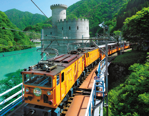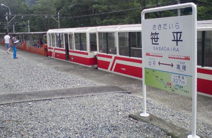The Kurobe Gorge Railway (Kurobe Kyōkoku Tetsudō Kabushiki Kaisha), or Kurotetsu for short, is a private, 762 mm (2 ft 6 in) narrow gauge railway company operating the Kurobe Gorge Main Line along the Kurobe River in the Kurobe gorge area of Toyama Prefecture, Japan. The adjacent maps show the location on the Gorge. It is marked with the red flags which actually pin-point Unazuki Station.
