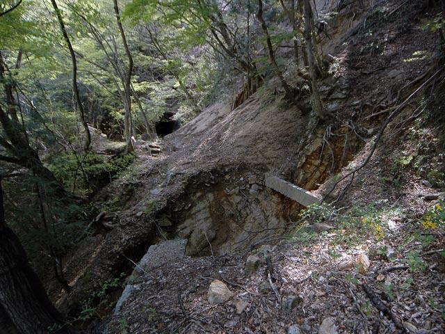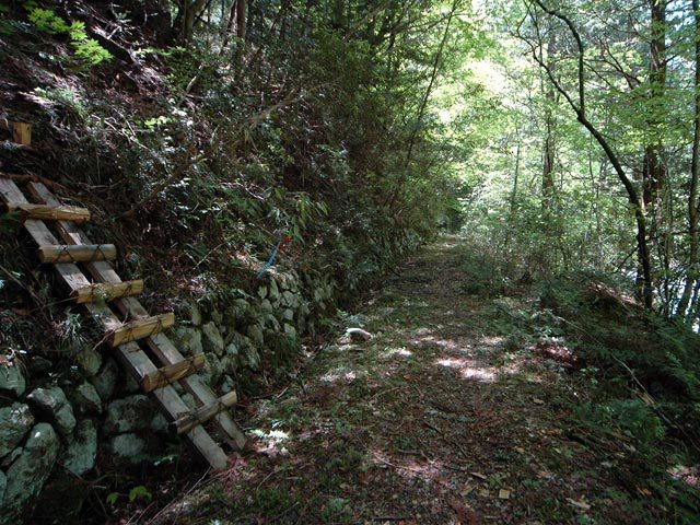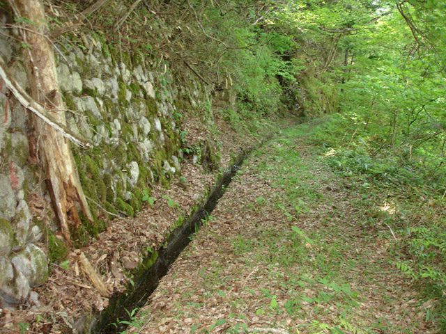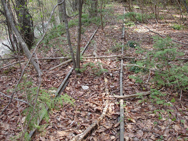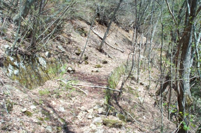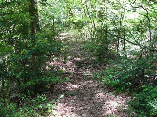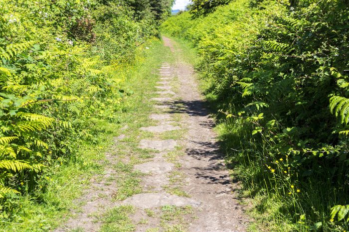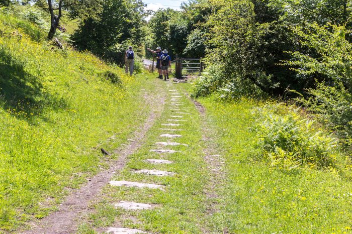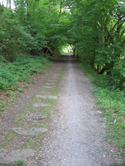 The adjacent image shows the tramroad formation looking south along this length of the tramroad. Note the stone blocks that once supported the rails of the tramroad, (c) Gareth James. [18]