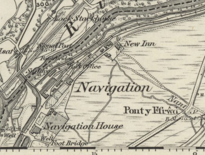 Navigation, on the maps below, is Abercynon. The lower map shows the canal basin and the tramway lines which served it. They seemingly are still in place in 1884/1885.