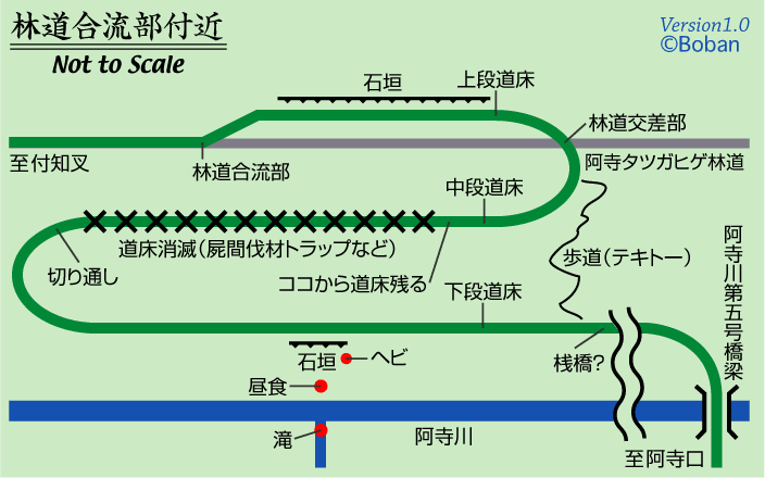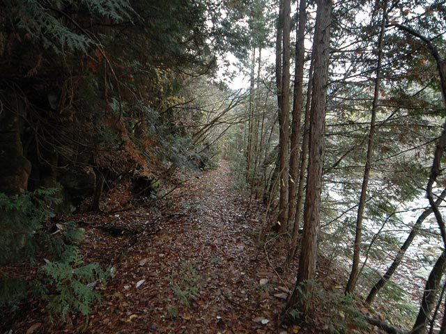 The line turned north and passed under the later Great Western Coal Level Viaduct which can just be seen in the top-left corner of the map above. Travelling North, the tramway, the railway and the Canal followed the course of the River Taff. Passing loops were provided every few hundred metres. From Quakers Yard to Pontygwaith Bridge the tramroad formation is a tightly packed stony track. [6]