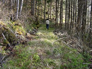 This image looks back along the formation of the tramroad from close to the bridge over the line, (c) Gareth James. [13]