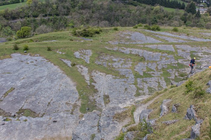 Morlais Castle Quarries Western tramroad branches from above the quarry, May 2017. [32]