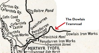 The adjacent plan gives an overview of the tramroads in and around Merthyr Tydfil. [14]