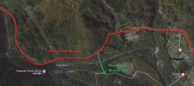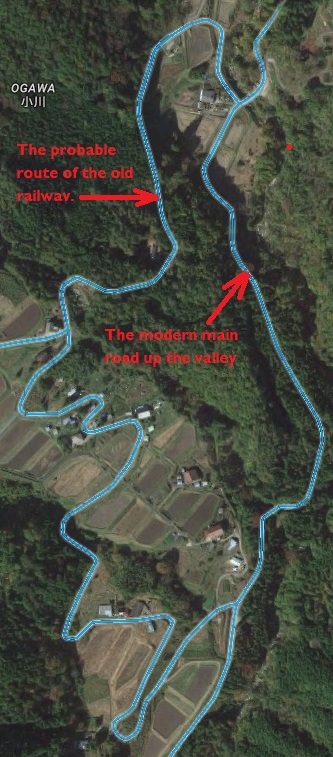The route is picked out with red dashes on the adjacent extract from the 1875 edition of the OS Maps. It shows the extent of the standard-gauge station complex. It shows that the tramroad route was used both as a tramroad and as a highway.
