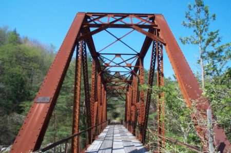 Greenfield Bridge, Penydarren Tramroad is a Grade II* Listed Building in Treharris, Merthyr Tydfilridge over the River Taff []– this section of the tramroad is, today, quite tranquil as it passes through a small wood with the river running below (c) John Light. [5]