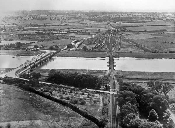 Train approaching South Lynn Station across the River Great Ouse. [13]