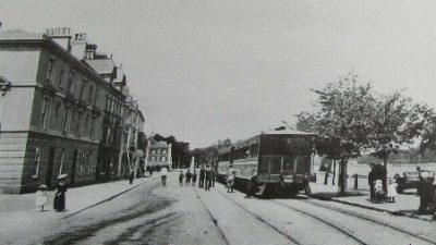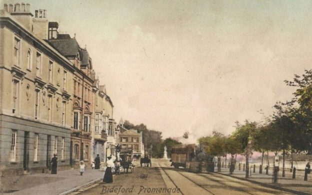The Bideford, Westward Ho! & Appledore Railway was incorporated on 21 May 1896, with its Head Office address at the Electrical Federation Offices in Kingsway, London WC2. Soon after the line passed to the British Electric Traction Company (BET). It was not until 24 April 1901 that the single track line was opened as far as Northam, although the first trial train ran with a few friends of the directors in January 1901. The first train, pulled by Grenville was played off by Herr Groop’s German Band which had been hired for the season and it reached speeds of 36 mph on its inaugural run. The remaining extension to Appledore finally opened in 1908, on 1 May, costing £10,000. The railway was built in three sections, with the first being from Bideford for just over the third of a kilometre; the second from the termination of the first, to Westward Ho!, a length 6 t0 7 kilometres; and the third being from Westward Ho! to Appledore, a length of between 3 and 4 kilometres. [3]