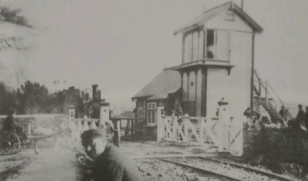 This photo shows the road crossing over Northam Road at The. Causeway, the crossing keeper’s home and the tall signal box.