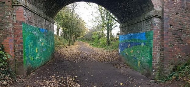 We continue to follow the route of the old railway and the A386 past the modern superstore to the right and Bideford FC to the left.