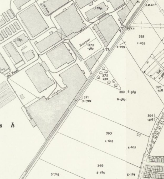 Just to the North of the football ground we find the old carriage shed at a slight angle to the A386. To its North was the Engine Shed. [5]