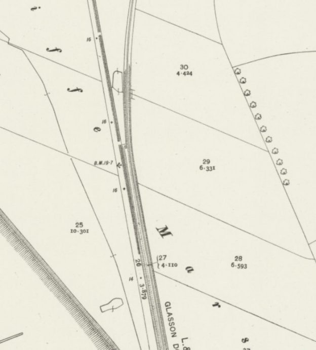 The second, on the OS Map below, is shown as Abbotsham Road. The photograph below is taken from Abbotsham Road looking Northeast from the South of the line of the railway. The road is now a very minor lane. It was crossed on the level. The railway approached the crossing on a slight embankment as can be seen in the photograph (Google Streetview). There is no obvious sign now-a-days of the halt which existed at this location. The halt was a mile or so from Abbotsham village. A passing loop can be picked out on the OS Map.