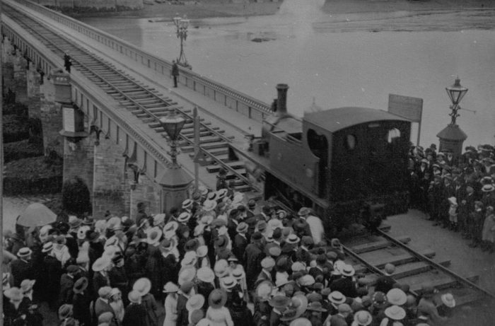 1917: a steam engine crosses Bideford Bridge on rails! [4]