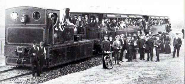 The Bideford, Westward Ho! & Appledore Railway was incorporated on 21 May 1896, with its Head Office address at the Electrical Federation Offices in Kingsway, London WC2. Soon after the line passed to the British Electric Traction Company (BET). It was not until 24 April 1901 that the single track line was opened as far as Northam, although the first trial train ran with a few friends of the directors in January 1901. The first train, pulled by Grenville was played off by Herr Groop’s German Band which had been hired for the season and it reached speeds of 36 mph on its inaugural run. The remaining extension to Appledore finally opened in 1908, on 1 May, costing £10,000. The railway was built in three sections, with the first being from Bideford for just over the third of a kilometre; the second from the termination of the first, to Westward Ho!, a length 6 t0 7 kilometres; and the third being from Westward Ho! to Appledore, a length of between 3 and 4 kilometres. [3]