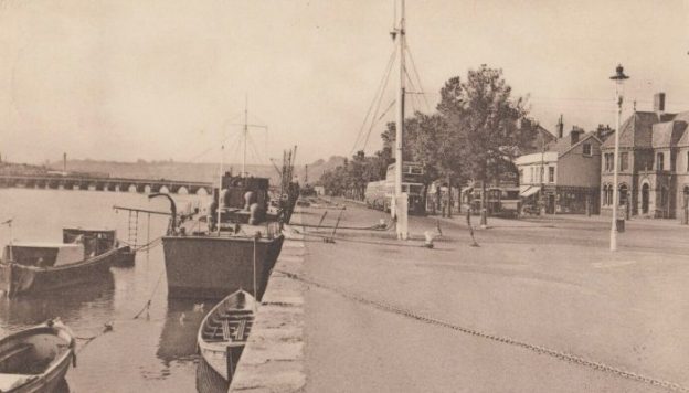 An attempt to replicate the 1943 image looking South along the Quay. The reference point is the white building seen between the trees on this image which appears inn a similar position in the picture taken in 1943.