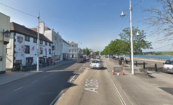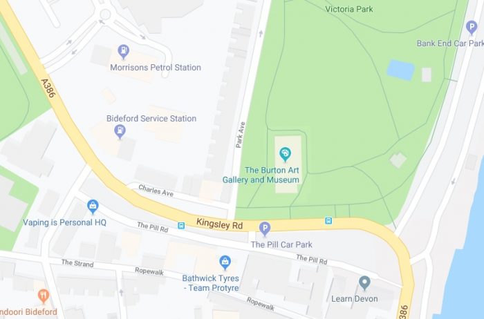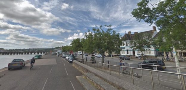 The view of The Quay from Bideford Bridge in June 2018 (Google Streetview).