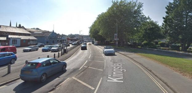 Looking West up Kingsley Road. The old railway formation/route became the A386.