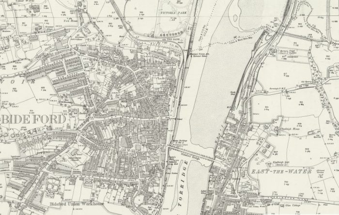 The OS Map extract below shows the relative locations of the two stations at Bideford.
