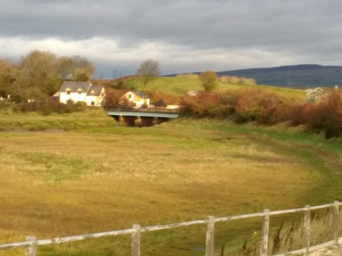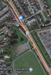 We continue to follow the route of the old railway and the A386 past the modern superstore to the right and Bideford FC to the left.