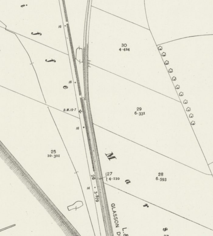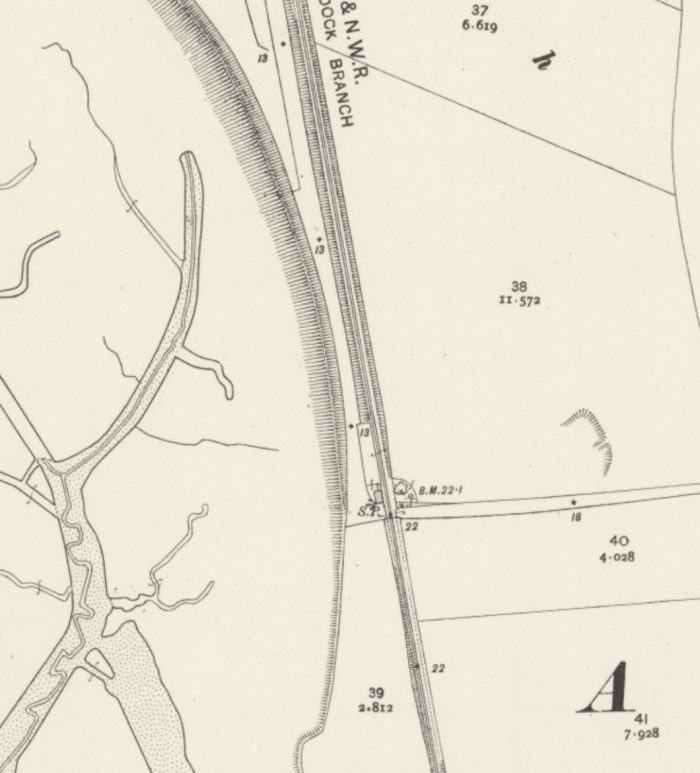 The trackbed of the old railway continues beyond the carriage and engine sheds along the line of today’s A386 for a short distance. At a point South of ‘Glenburnie’ and East of ‘Causeway’ on the above OS Map the road and trackbed separate with the modern road heading away to the North and the trackbed heading West. It crossed the old road north (Northam Road) out of Bideford to the left of ‘Causeway’ on the level adjacent to a Halt and a two and a half storey signal box. The signal box was built to this height to allow approaching road traffic to be spotted. [5][23: p16]