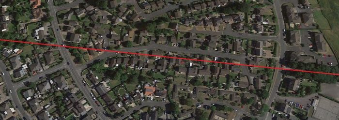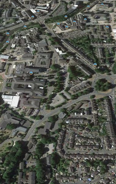 Looking North along Ashton Road across the site of the Infirmary and its car-park (Google Streetview).