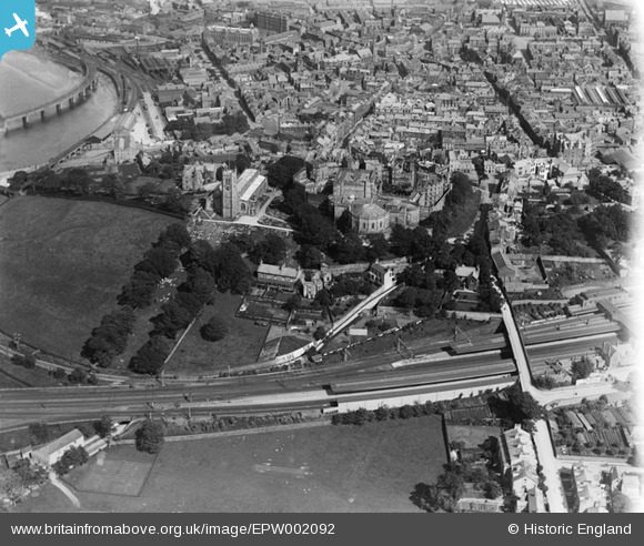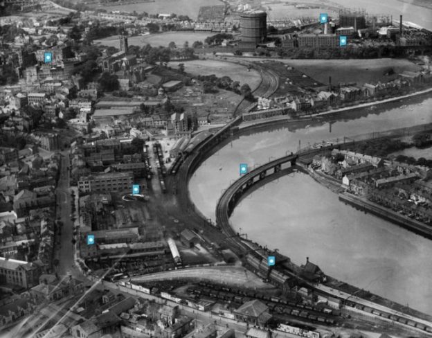An image from above, taken from further West, shows Castle Station in the foreground and Green Ayre Station in the left background. Greyhound Bridge can be seen curving across the River Lune in the extreme top left of the image. [24]