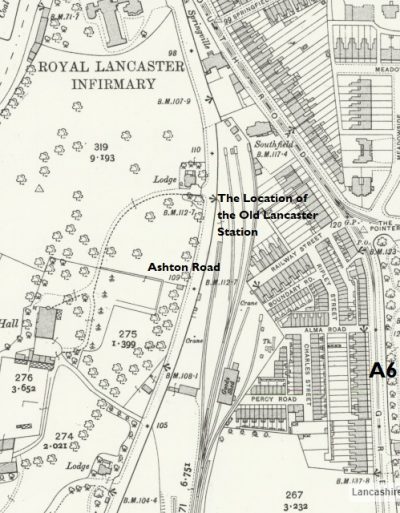 The station was located near the modern-day junction between South Road and Ashton Road, just south of the Lancaster Canal and the southern end of Penny Street.
