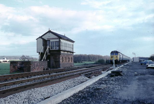 A platform level view of Green Ayre Station which shows M29023M in the Eastbound platform. The platform signal box can be seen to good advantage in this image. The photo appears on the pjbrailwayphotos site and is marked Copyright: N/A (Public Domain). [21]