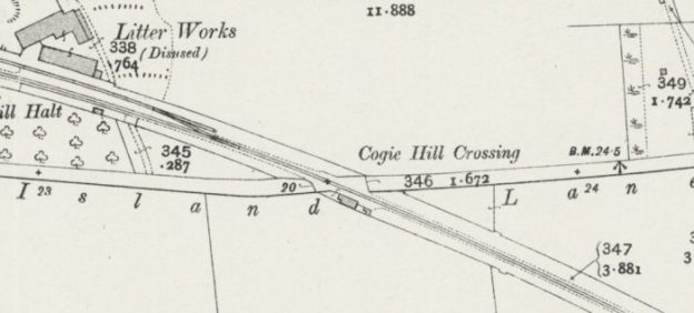 The adjacent OS Map extract shows the old station site and the old passenger building is designated ‘Southfield’. The pictures below show that it is now all laid to car-park and provides for visitors and staff at the hospital. The first image is a Google Earth satellite image of the area included in the OS Map extract. The image below that is taken from Aston Road a looks North across the car-park form approximately the location of the text ‘Ashton Road’ on the OS Map Extract.