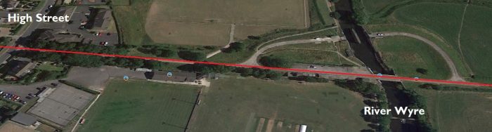 The Southwest end of Green Ayre Station. The line to Morecambe can be seen curving away to the right over the River Lune. The goods yard and the link to Lancaster Castle Station can be seen on the left of this image. [17]The bridge seen curving to the right in the image above was called ‘Greyhound Bridge’. “A wooden bridge crossing the Lune at Green Ayre was completed in 1848. The timber bridge at Green Ayre was replaced by a steel structure in 1864. This bridge stood until 1912 when a new bridge was built. The girders from the old bridge were used to build a new bridge across the Lune at Halton. After the closure of the railway in 1966 the bridge was converted to road use.” [19]
