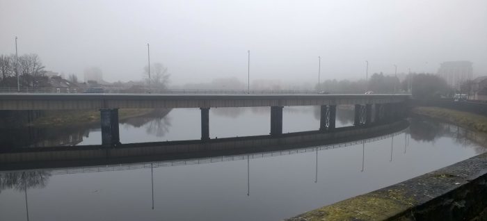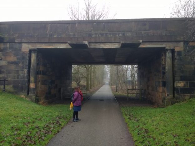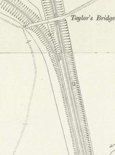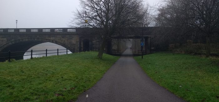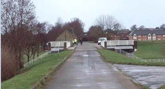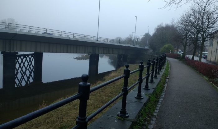A closer look at the modern bridge. ….. The route we have followed to reach this point followed the line of the old branch between Castle Station and Green Ayre.