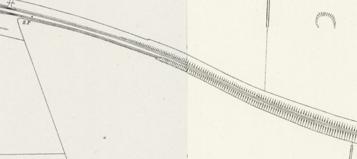 Most of the spur line leading towards the station continued to be used to access a goods station until the 1960s.