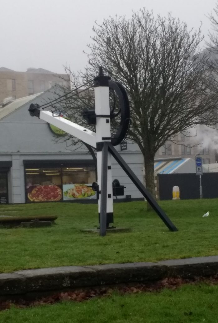 The old yard crane which is still standing close to the location of the old cattle-pens and the entrance to the coal yard at Green Ayre Station.