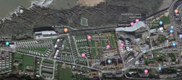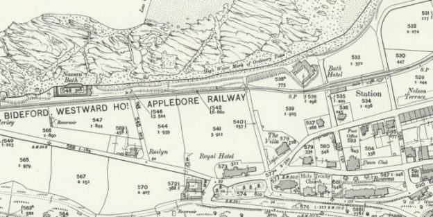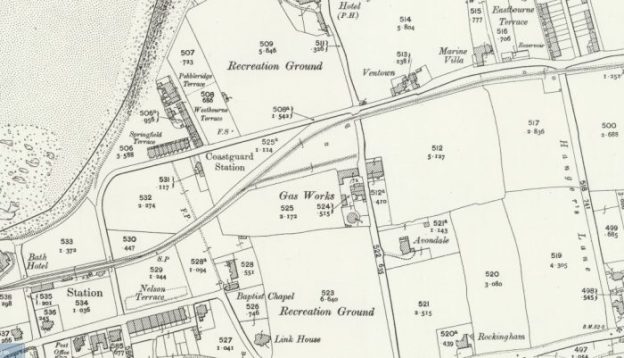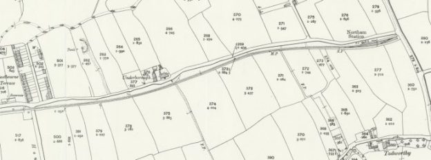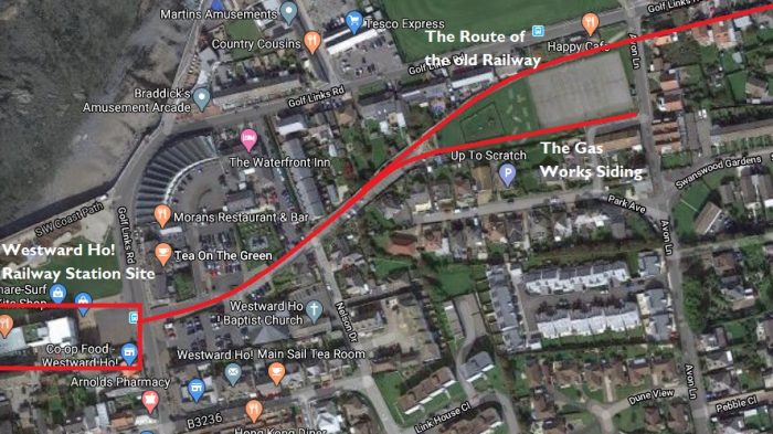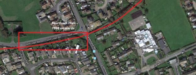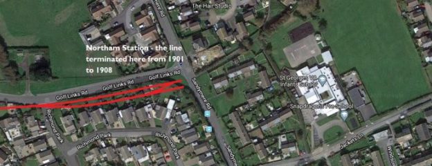 The station was to the Northeast of the city. It can just be seen at the top of the adjacent Google Maps excerpt.