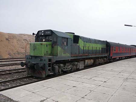In 1971: 83 No. EMD-GT26CW Locomotives numbered 501-569, 801-914 were purchased by Iranian State Railways. (Class 60 included an additional 9 No. EMD-GT26CW Locomotives numbered 975-984 which were purchased in the 1980s.) They weighed 120 tons, were rated at 2205 kW with a dynamic brake power of 1500 kW. They provided a tractive effort of 235 kN and a top speed of 123 km/hr. [14] There are some pictures of these locos on Flickr, including: