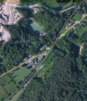 This satellite image shows the exchange sidings highlighted on the previous image alongside the main Zarand to Kerman line in the top left of the image. A branch line which serves the min complex in the centre of the image can be seen curving away from the main line and leading a complex of sidings to the Southwest side of the mining site (Google Earth) .