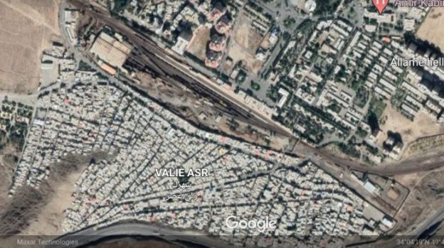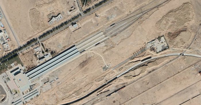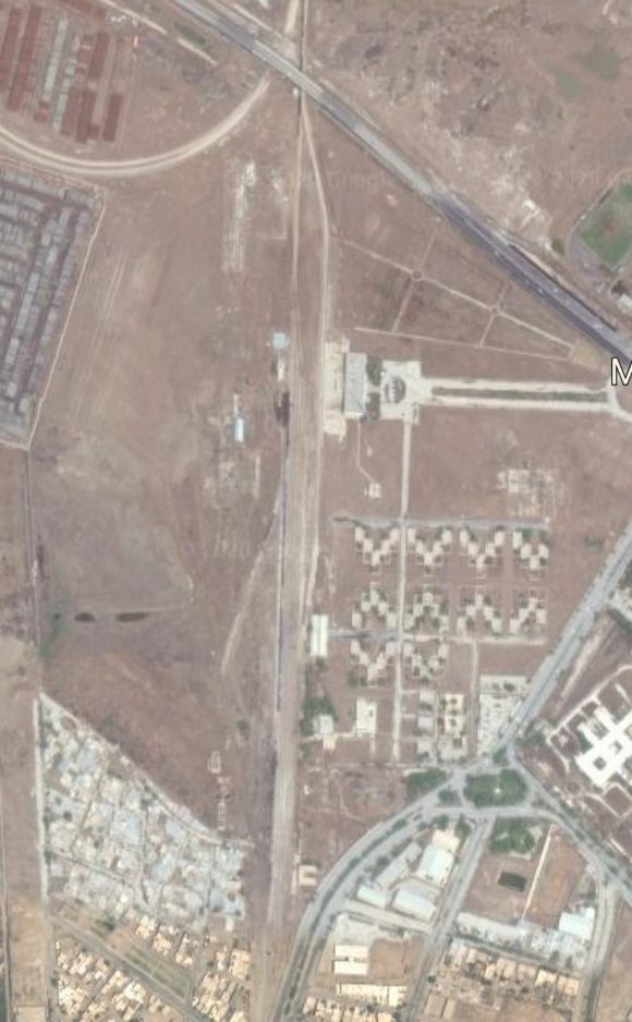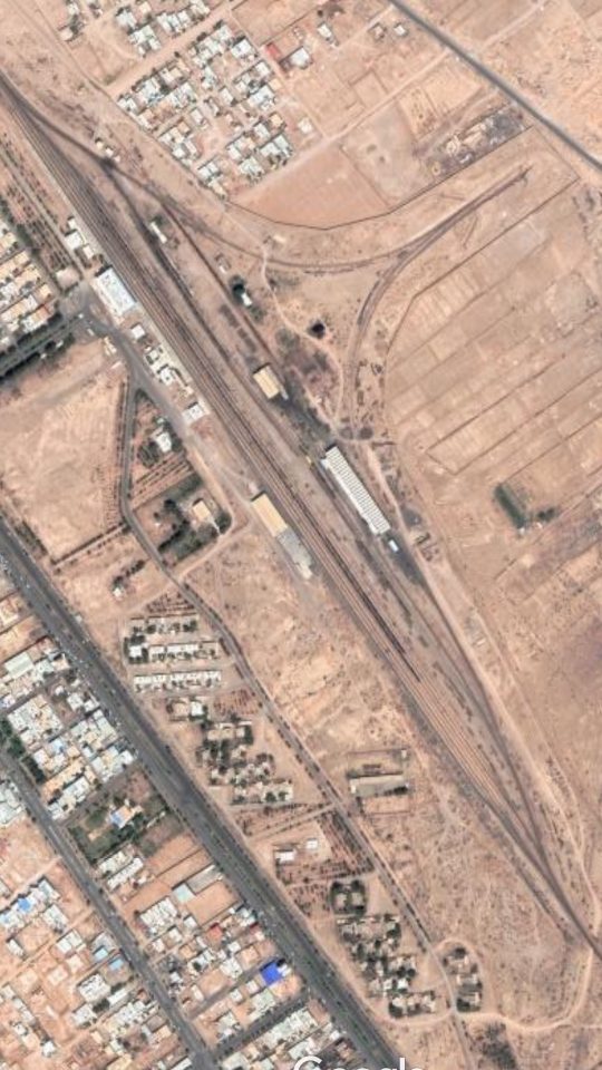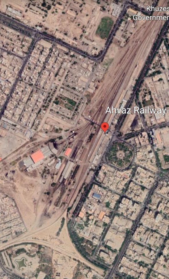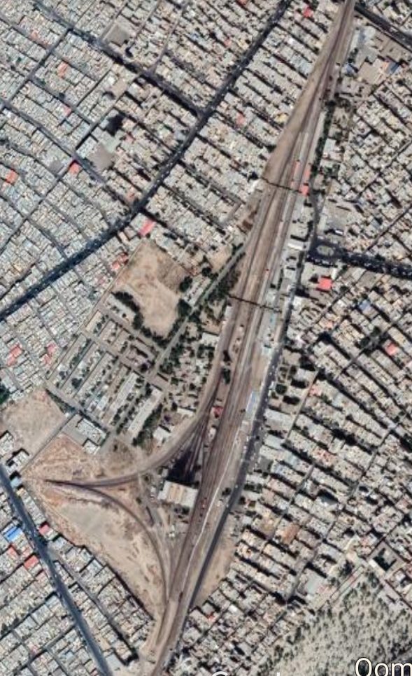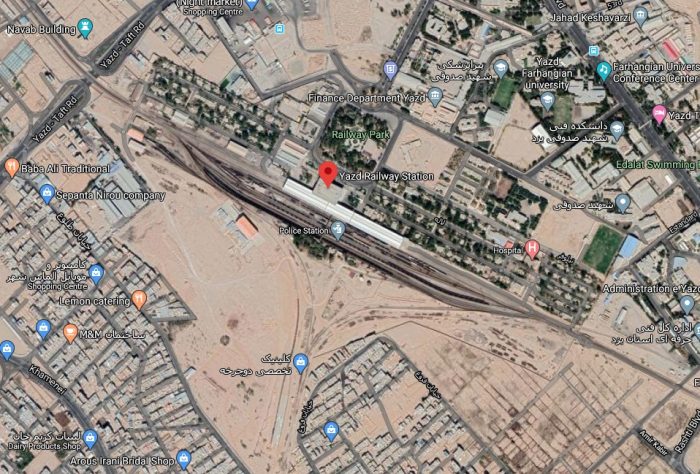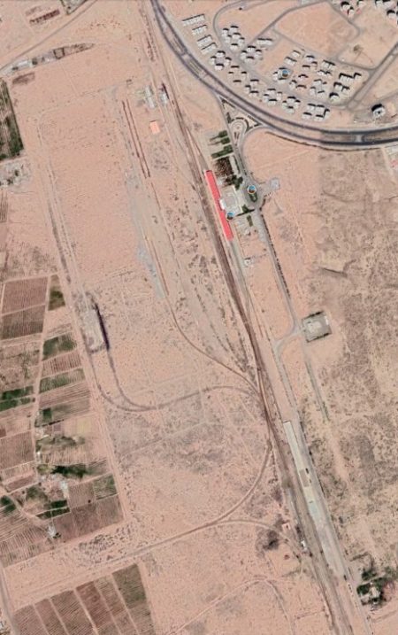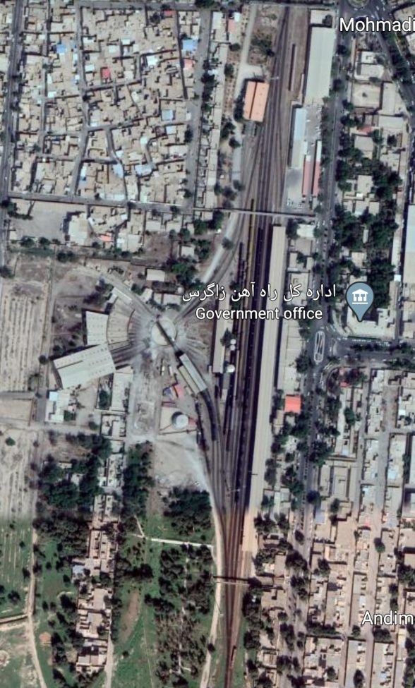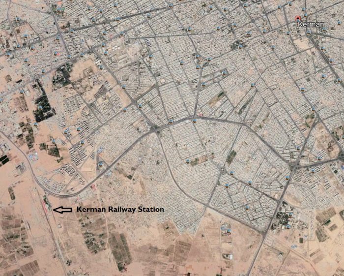 Kerman Railway Station is to the Southwest of the city (Google Earth). It is shown in gradually increasing detail on these three satellite images.