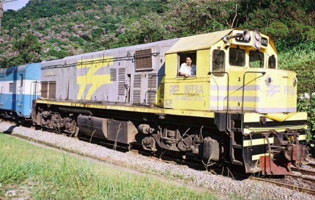 Not in Iran, but in Brazil, this picture of an EMD-G22 Locomotive has a Creative Commons Licence, (c) Heron Soares. The Locomotive is an EMD-G22U of Rede Ferroviária Federal S.A. MACOSA No. 4392-6L working on the Teresa Cristina Railroad – Paraná, Brazil. The suffix ‘U’ indicates narrow- rather than standard-gauge (which would have the suffix ‘W’). [17]