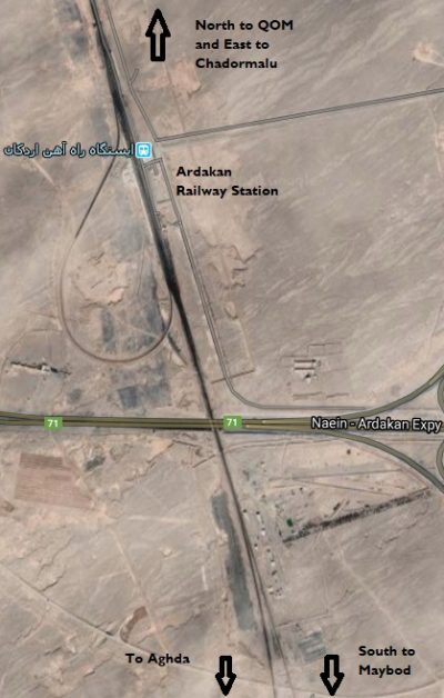 We had not seen anything of the Railway yet. It ran in a large arc from Tehran to the southeast before turning north, and we were to encounter it first at the town of Firuzkuh on the other side of the valley we were now in. At the town, the railway crosses the highway from Tehran and the road divided in two – one route heading east to holy city of Meshed (Mashhad) near the Afghan border, the other following the railway across the pass at Gaduk and through the valley of the River Talar to Shahi and on to the Caspian Sea.