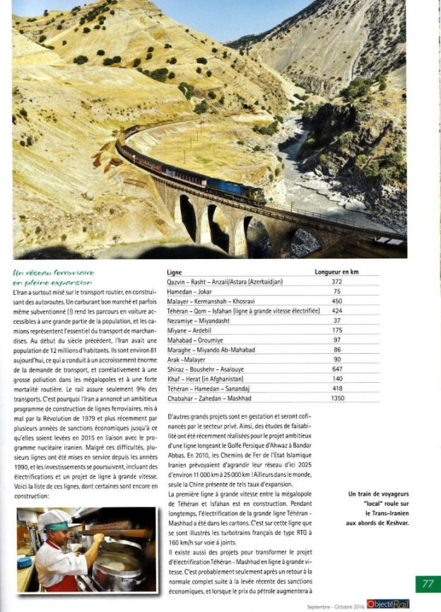 - Jean-Marc Frybourg and Bernd Seller; Globe Trotter: Des Trains au Pays des Ayatollahs; in Objectif-Rail No. 77 September-October 2016, p68-86. This article is written in French. A copy of the article is provided below in the Appendix.
