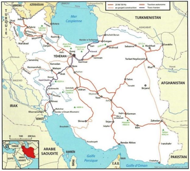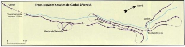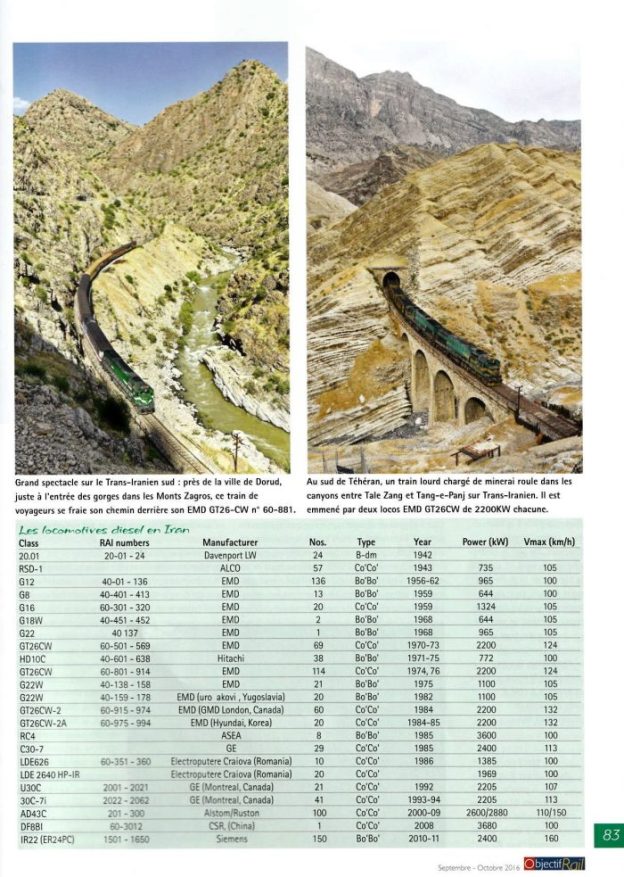 A small independent group of three amateurs successfully completed such a trip in April 2016 without any notable incident other than a puncture. But one can always come across formidable “Guardians of the Revolution” which can create more or less serious troubles. And above all, there are areas that are strictly prohibited, but that are not visible on the map or on the ground. Fortunately in May 2016, Bernd Seiler, the dynamic boss of FarRaiI Tours (httplIwww.farrail.net) organized a first trip for photographic and rail video enthusiasts, with official authorization to photograph trains wherever the route (duly validated and approved) took the party, but he could only obtain this privilege in return for the “purchase” by Far-Rail of a useless charter train, which served as “cover” for the payment to the Iranian railways (RAI) of substantial financial compensation. As usual, Bernd did an excellent job. Besides the free visit (without orange vest!) to the Tehran workshops, the group benefited from access to sites along the length of the Trans-Iranian as spectacular as they were inaccessible. The group were offered the use of inspection and maintenance vehicles which transported them to rural stations and sites for photography which allowed the pictures in the article (see the Appendix) to be taken. The only regret was the presence of fog in the region from the Caspian Sea to the pass at Gaduk in the Elburz Mountains, which prevented a good pictorial record of the fascinating loops and structures near Veresk. But even the best of the organizers is not in control of the weather … FarRail Tours will be organizing further trips to Iran, the first in the spring of 2017.
